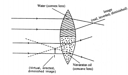 When we dipped the lens to a certain height which ¡s greater than the focal length of lens In air, we can see the Image. This shows that the focal length of lens has increased in water.