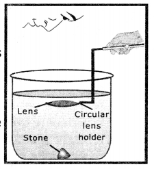 - Now dip the lens Into water using circular lens holder such that it is at a distance which Is less than or equal to focal length of the lens in air.