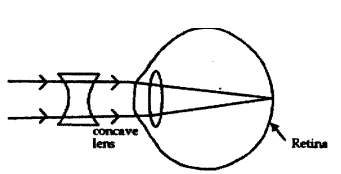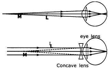 Some people cannot see objects at long distances but can see nearby objects clearly. This type of defect in vIsion Is called ‘Myopia’ or near sightedness’. This can be corrected by using a concave lens of suitable focal length.