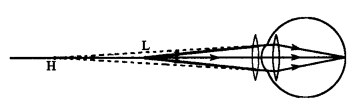 2. Then the defect of vision, Hypermetropla, Is corrected when the image of the object at L is formed at the near point (H) by using a biconvex lens as shown In the fig.