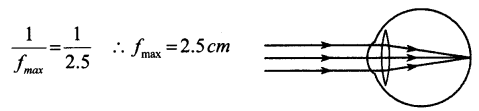 Using lens formula 1/f=1/v?1/u⇒1/fmax=1/2.5+1/∞⇒1/fmax=1/2.5+0