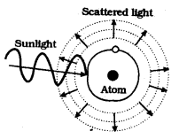 When we look at the sky in a direction perpendicular to the direction of the sun rays, the sky appears to be blue in colour.