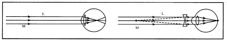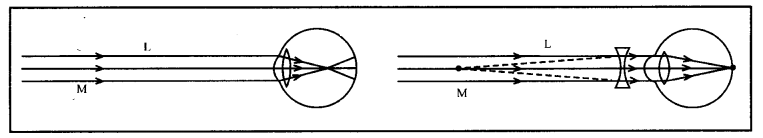 c) With the help of a diagram show how this defect can be corrected by the use of a suitable lens.