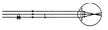 1. When the object is at infinity, the parallel rays from the object failing on the eye lens are refracted and they form a point-sized image on the retina.