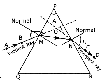 The dispersion of white light occurs at the first surface of prism where Its constituent colours are deviated through different angles.