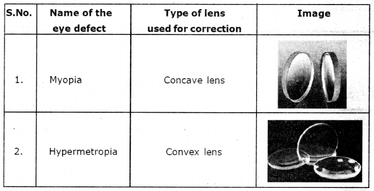The common defects of vision are i) Myopia ii) Hypermetropia iii) Presbyopia