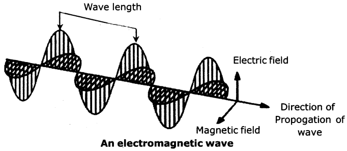 - This process continues, with both the created fields being perpendicular to each other and at right angles to the direction of propagation of the wave.