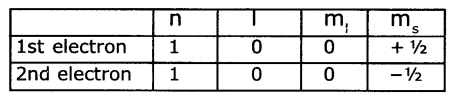 Helium atom has two electrons. The first electron occupies ‘is’ orbital. The second electron joins the first In the 1s-orbital, and so the electron configuration of the ground state of He’ is 1s2. According to Pauli Exclusion Principle, no two electrons of the same atom can have all four quantum numbers the same.