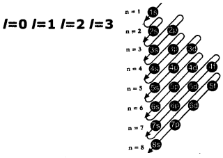 3. The magnetic quantum number (ml): The magnetic quantum number (ml) has integer values between - l and + l including zero.