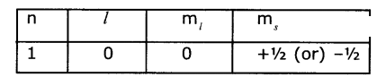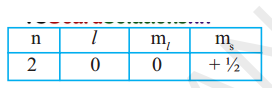(ii) Write the four quantum numbers for is’ 1S1 electron.