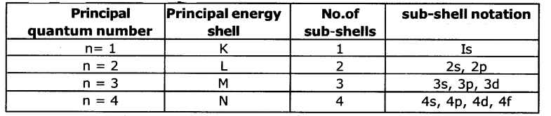 The number of sub-shells present in a principal energy shell is equal to principal quantum number ‘n’. Eg: