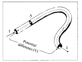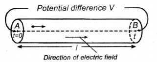 11. When a conducting wire Is connected to the terminals of the battery, a RD. is created between the ends of the conductor which sets up an electric field through-out the conductor.