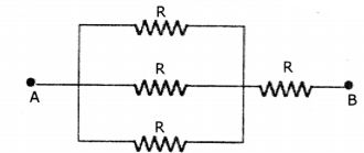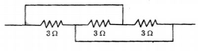 The cell connected across the series combination of 3 resistors maintains a potential difference (v) across the combination. The current through the combination is I.