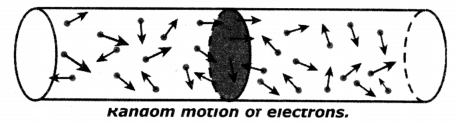 4. Hence if we imagine any cross-section as In above figure, the number of electrons, crossing the cross-section of a conductor from left to right in one second is equal to that of electrons passing the cross-section from right to left in one second and the nett charge moving along conductor through any cross-section Is zero when the conductor is in open circuit.