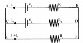 - Now connect a voltmeter In the circuit across AB, close the key and note the voltage (V) across the series combination of resistors. Note the reading As V.