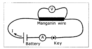 - Note the readings of current (I) from ammeter and potential difference. (V) from voIt meter in the table given below.