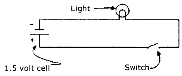 - Connect the ends of the copper wires to the terminals of the battery through the bulb and switch.