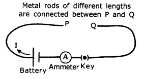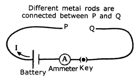 - p and Q are the free ends of the conducting wires Different metal rods are connected between P and Q.