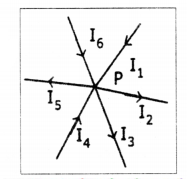 This means that there is no accumulation of electric charges at any junction in a circuit. Eg: ‘P Is the junction