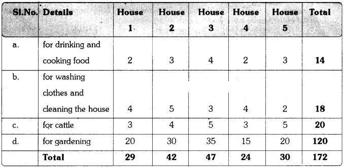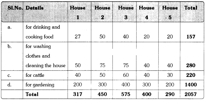 The quantity of water used by the households in the locality from various water sources and how the usage can be minimised for conserving drinking water.